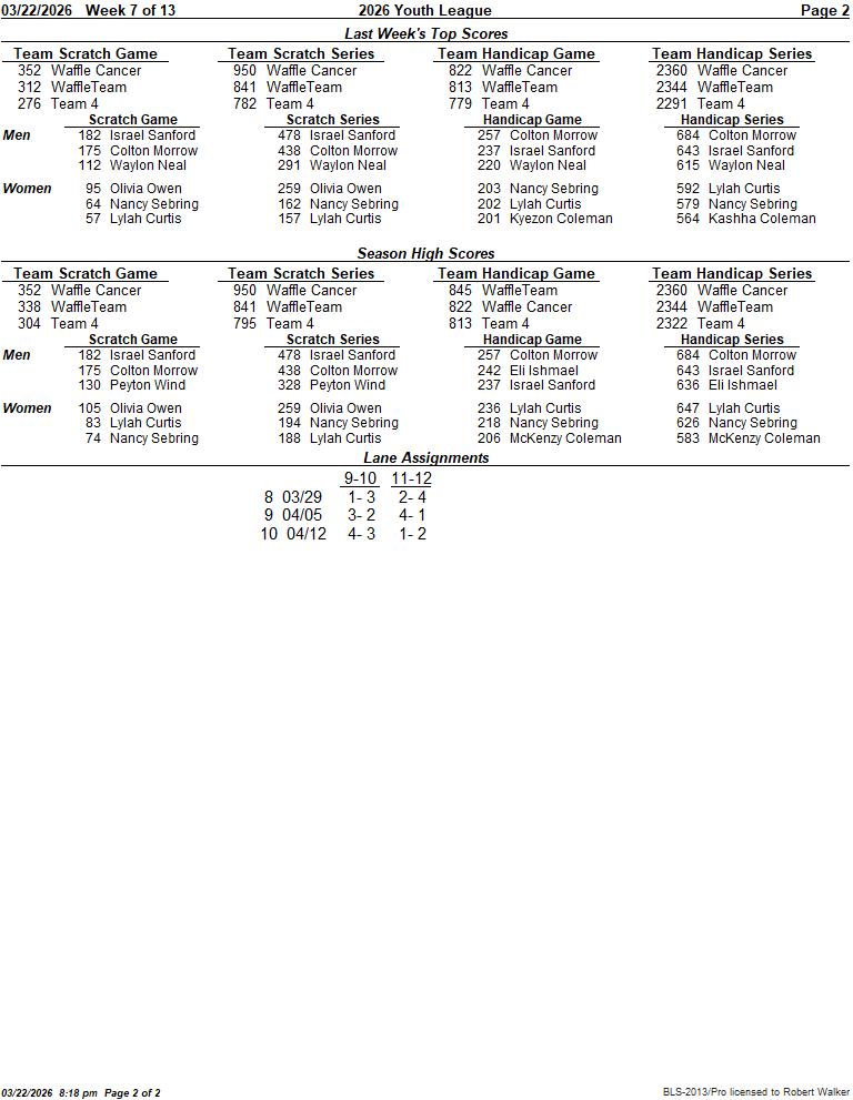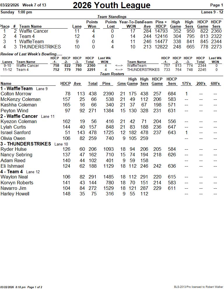 2026 Youth League Standings (pg.1 of 2) 2026 Youth League Standings (pg.2 of 2)